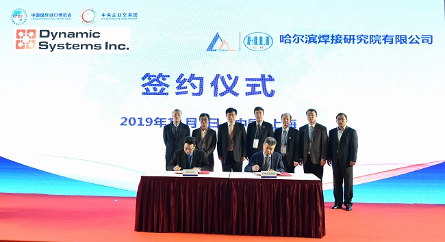 DSI亞太區總裁陳偉昌代表美國DSI公司和哈焊院副總經理徐鍇簽署了采購意向協議。