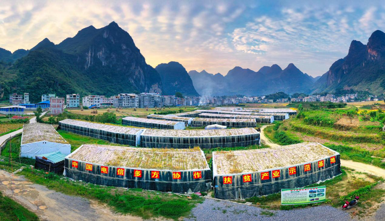 百色市的田林縣,則在中國(guó)電信的幫扶下因地制宜地建成了555個(gè)姬松茸種植大棚,年產(chǎn)姬松茸2800噸,產(chǎn)值2500萬(wàn)元,帶動(dòng)1200戶群眾增收。通過(guò)“村民合作社+龍頭企業(yè)”聯(lián)合的發(fā)展模式,解決了姬松茸產(chǎn)業(yè)生產(chǎn)中的技術(shù)、管理、銷售等問(wèn)題,而產(chǎn)業(yè)園區(qū)的建設(shè)則實(shí)現(xiàn)了產(chǎn)業(yè)從量到質(zhì)的飛躍式發(fā)展,讓長(zhǎng)期可持續(xù)“造血”成為可能。