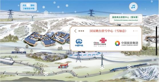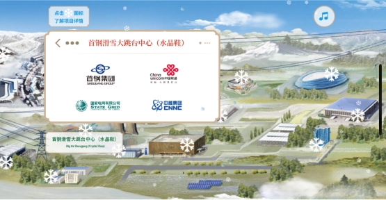 向左滑動來到首鋼園附近,由首鋼集團(tuán)建設(shè)的首鋼滑雪大跳臺(水晶鞋)與首鋼冷卻塔交相輝映,這里將承擔(dān)單板和自由式滑雪大跳臺比賽項(xiàng)目,其設(shè)計(jì)理念源自中國敦煌壁畫中傳統(tǒng)的飛天造型,從側(cè)面看去猶如一只靈動的“水晶鞋”。首鋼園作為冬奧組委所在地,由中核集團(tuán)、國家電網(wǎng)、中國聯(lián)通等提供的技術(shù)服務(wù),是奧運(yùn)籌備和指揮神經(jīng)中樞的重要保障。