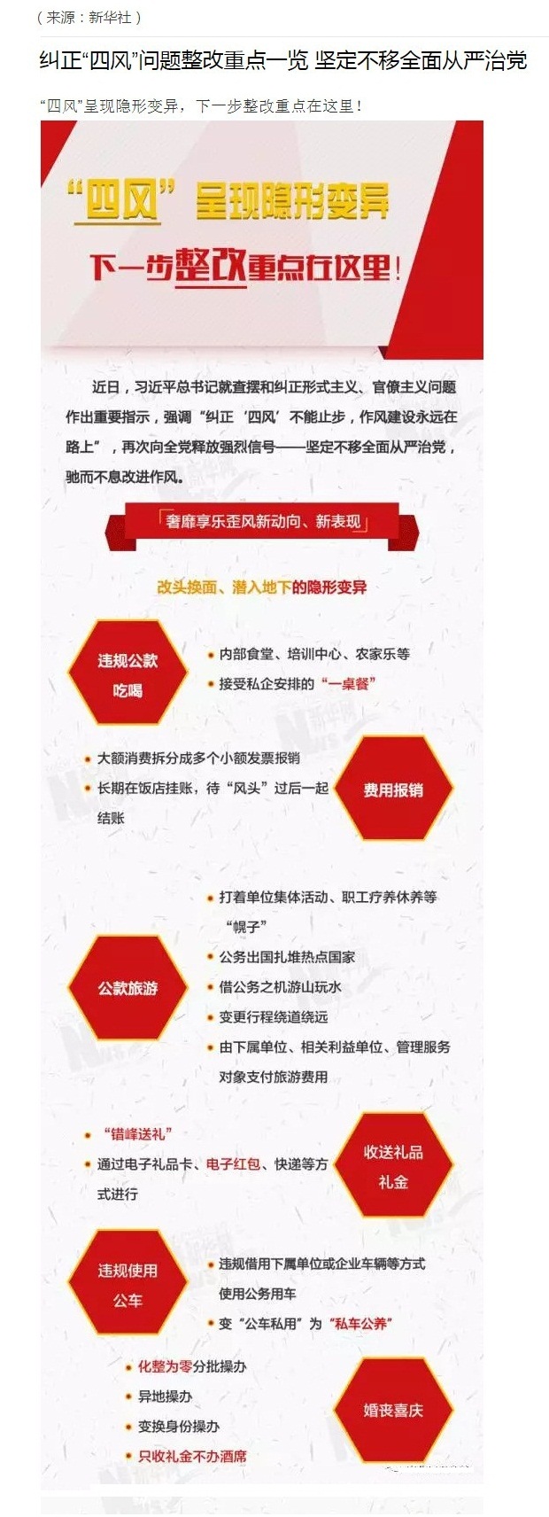 糾正“四風(fēng)”問題整改重點一覽 堅定不移全面從嚴治黨